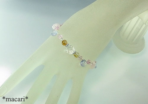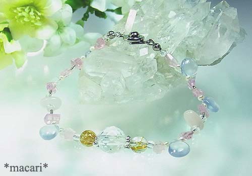 トロンとした優しい輝きのラベンダーカルセドニーとピンクトルマリンを組み合わせた可憐な印象のブレスです。