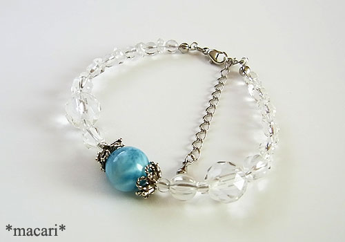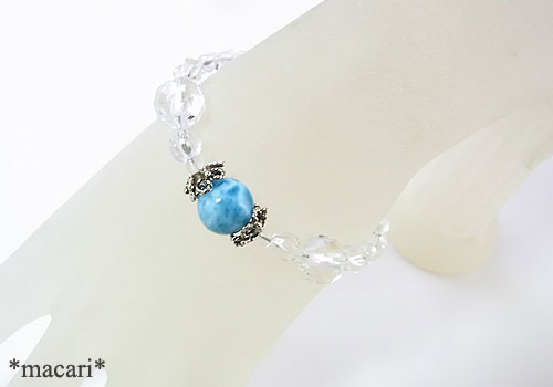 AAAグレードの濃いブルーと独特の模様が美しいラリマービーズをポイントに、アフガニスタン産のダブルポイントクォーツを繋いだシンプルなブレスレットです。