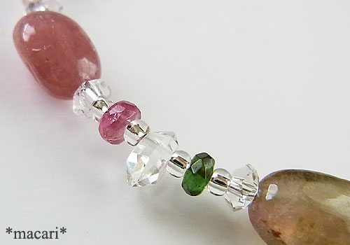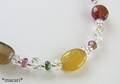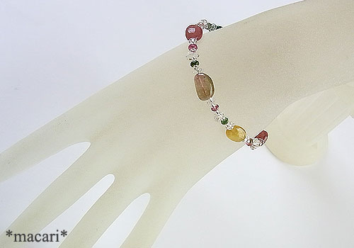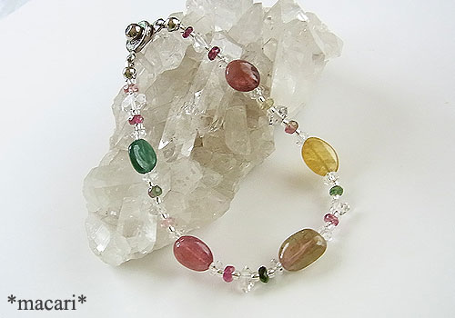 色とりどりの鮮やかなトルマリンと水晶を組み合わせた華奢な印象のブレスレットです。