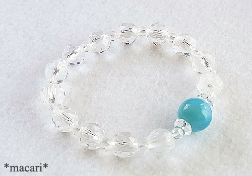 高品質の美しいディープブルーのラリマーをポイントに水晶でつないだシンプルなブレスレットです。真っ青なラリマーですが、よく見ると特有の模様や、色味がほんのりグリーンっぽいところも見られる面白い石です。^^