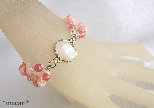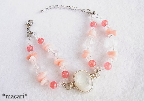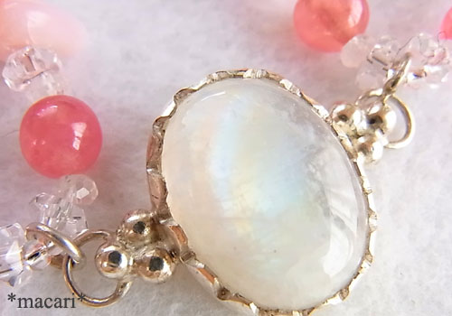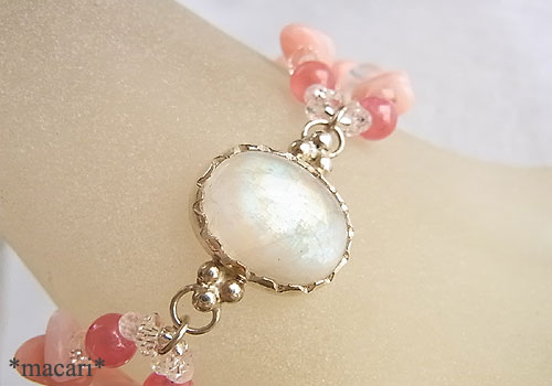 ホワイトラブラドライトのポイントブレス(ピンクオパール)