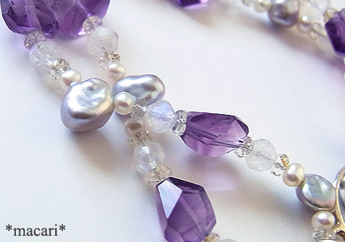 商品番号 br_359【使用石】スギライト13×10ミリ淡水パール バロック 6ミリ前後淡水パール ポテト3×2.5ミリ水晶 3ミリ 4ミリアメシスト タンブル 10ミリ前後ブルームーンストーン(ラブラドライト)4ミリ