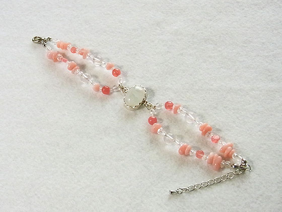 ピンクオパール(パリゴルスカイト)やインカローズなどを繋いだ愛らしい雰囲気のブレスレットです。