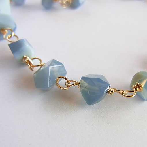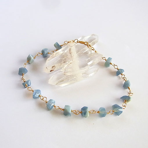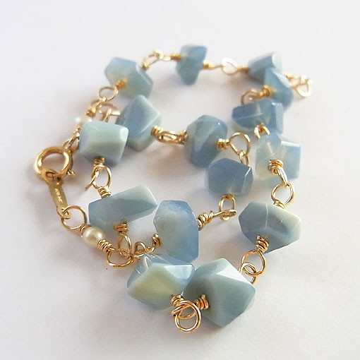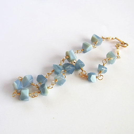 オレゴン州で産出するブルーオパールをk14GFワイヤーでシンプルに繋いだ華奢で品のあるブレスレットです。