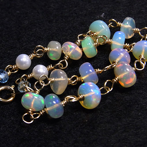 使用石 エチオピアオパール 3.5×2〜5×3.5ミリ 淡水パール4ミリ サンタマリア アクアマリン 3×1.5ミリ