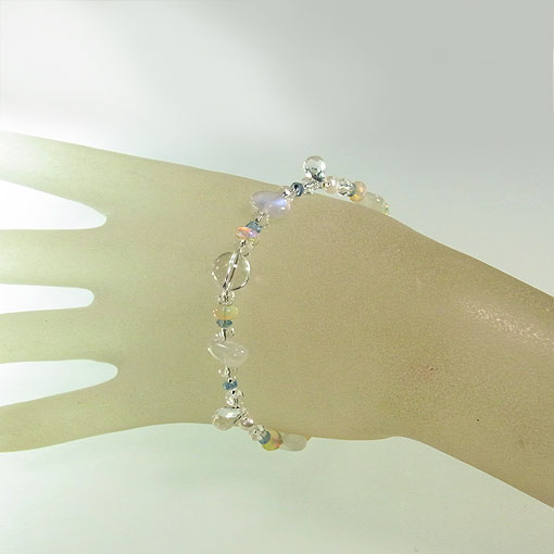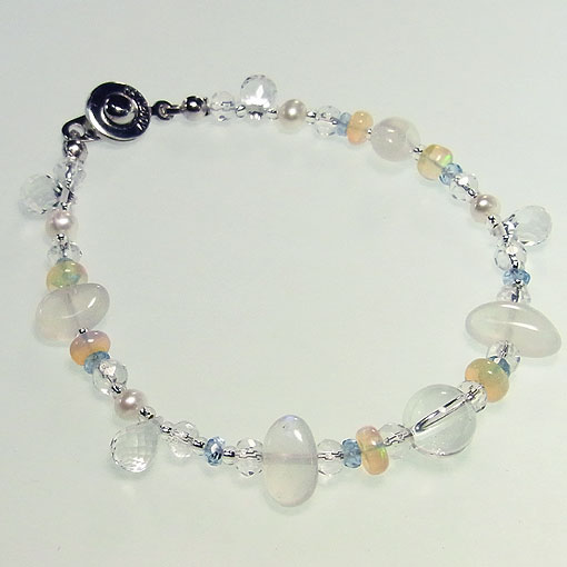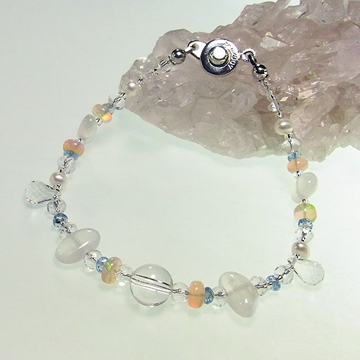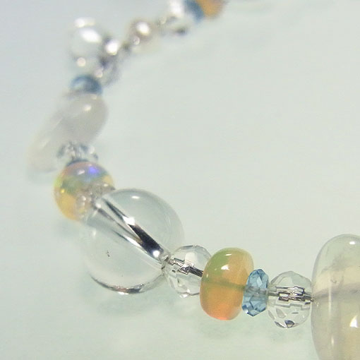 アクアマリンをポイントに水晶とエチオピアオパールを繋いだ
