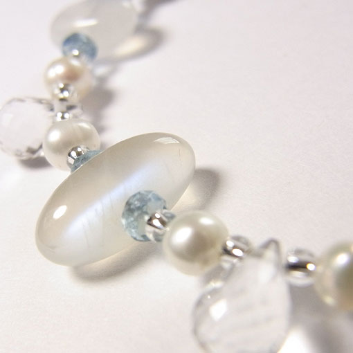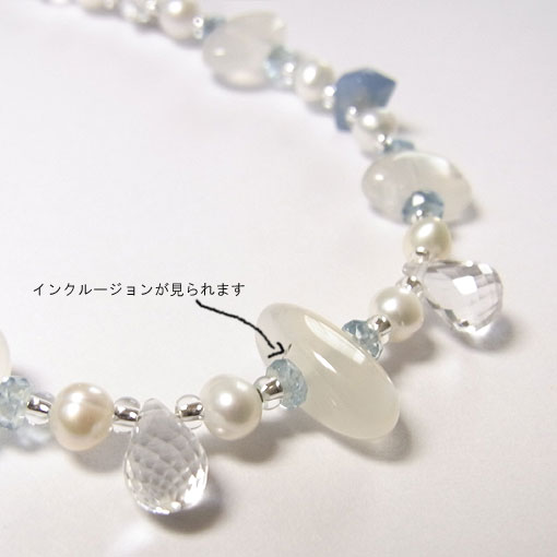 使用石 ペリステライト9×6ミリ〜13×6ミリ 水晶ブリオレット 8×5ミリ 淡水パール 4〜5ミリ アクアマリン3×2ミリ オーウィーブルーオパール フリーシェイプ 6×5ミリ グラスビーズ