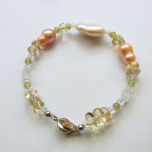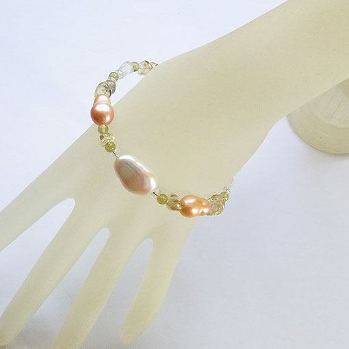 淡水パールとスキャポライトのブレスレット
