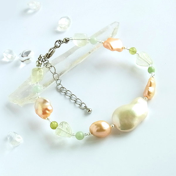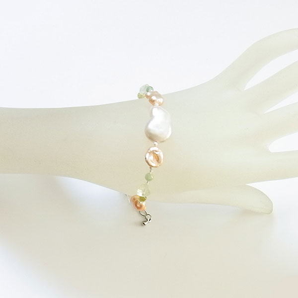 淡水パールとリビアングラスのブレスレット
