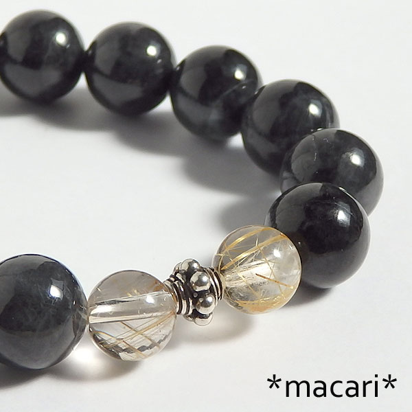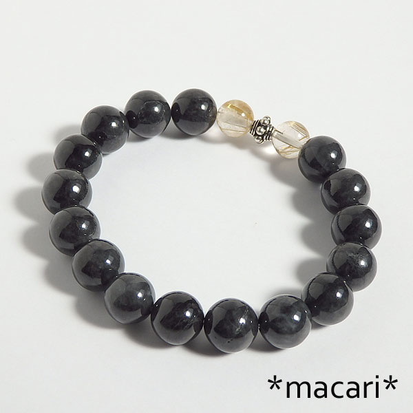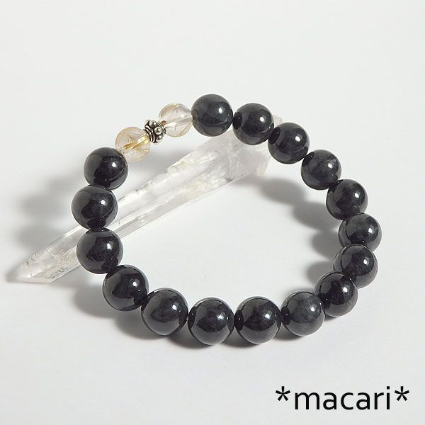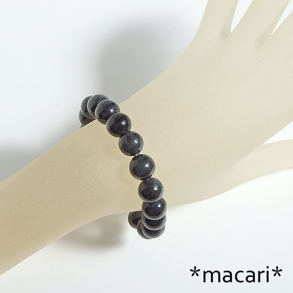 珍しいミャンマー産のブラックジェダイド(黒翡翠)をシンプルなブレスレットに仕上げました。 良く見ると真っ黒ではなく、所々グレーの部分があります。 とても冷たい感触で、水晶よりも冷たく感じますよ。 *表面に溝が見られるものがありますので、ご了承ください。 |