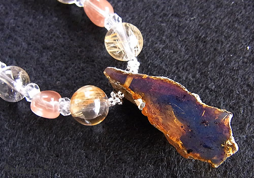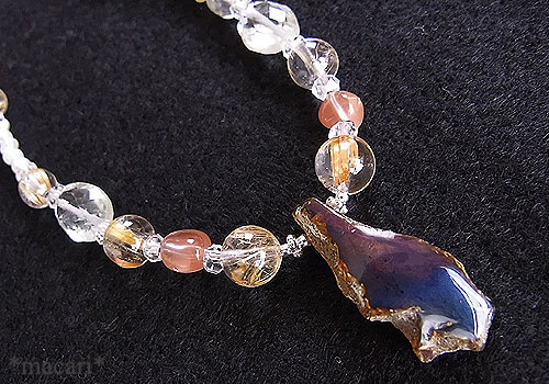 ブルーアンバー 26×11×9ミリルチルクォーツ4〜7.5ミリグリーンアメシスト10×8ミリ水晶 4×2.5ミリアンデシン タンブル 5〜6ミリ淡水パール 2.5ミリ