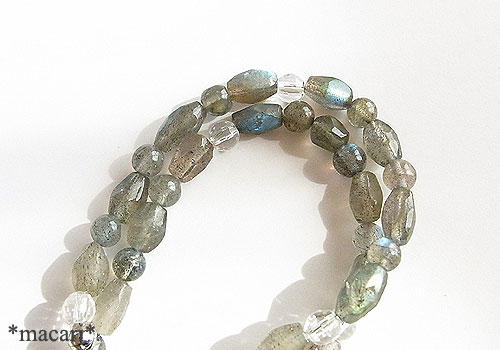 ラブラドライトのビーズにはブルーやグリーンのラブラドレッセンスが見られます。