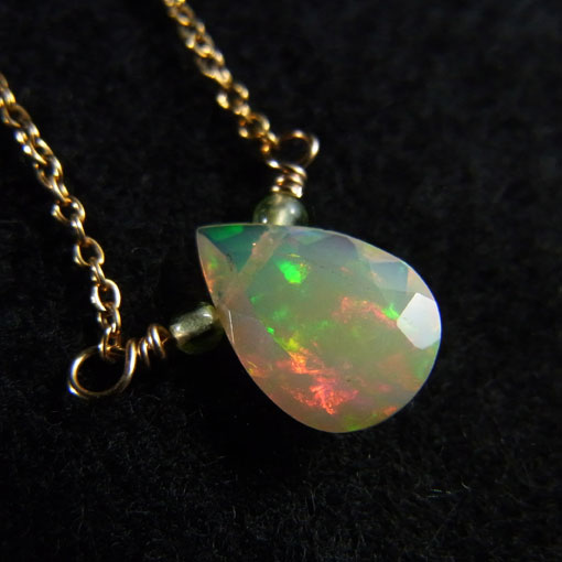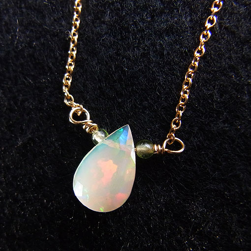 エチオピアオパールのシンプルネックレスk14GF 遊色の美しいエチオピアオパールを小さなペリドットのビーズで挟んだ *エチオピアオパール* 遊色が強く浮かび、乳白色のものの中にはハイドロフェンタイプという吸水することで *こちらはハイドロフェンタイプか確認しておりません。 わずかですが、内包物が見られます。 華奢なアクセサリーですので、優しくお取り扱いください。 | |