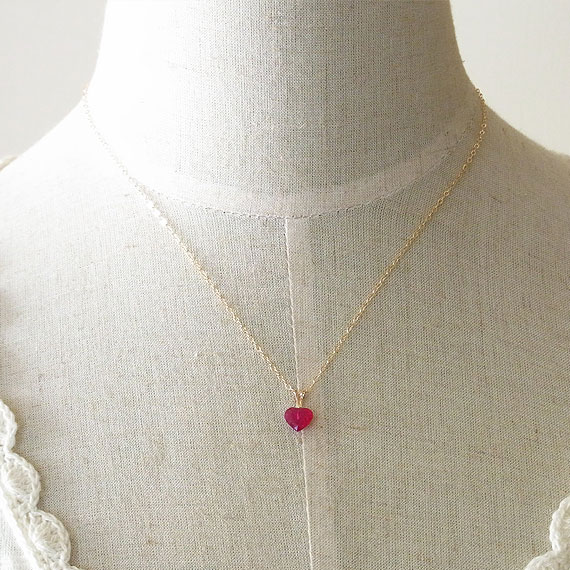 ルビーのハートペンダントネックレス