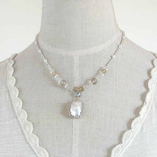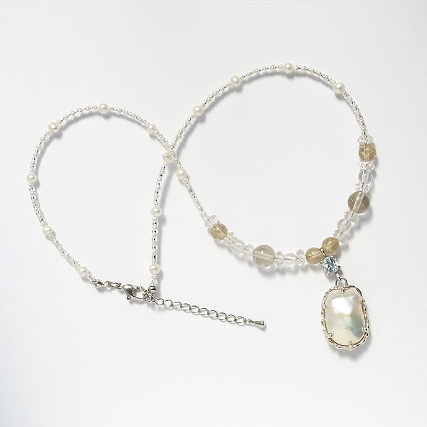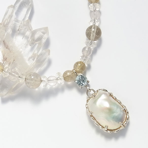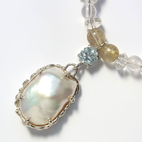 淡水パール バロック 20×18.5ミリ 淡水パールポテト 4ミリ ブルートパーズ 6ミリ ルチルクォーツ 8ミリ6ミリ ミルキークォーツ5ミリ