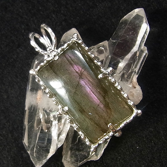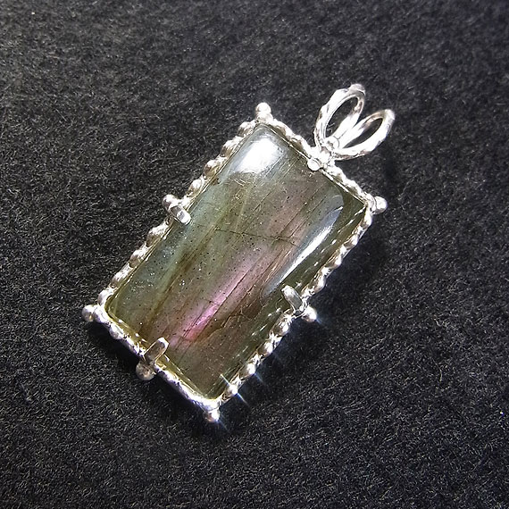 ラブラドライトのレクタングルペンダント パープルピンクの光が浮かぶ長方形のラブラドライトを
