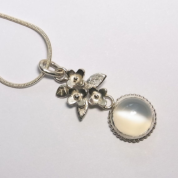 ムーンストーンの小花飾りペンダント