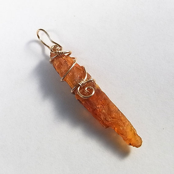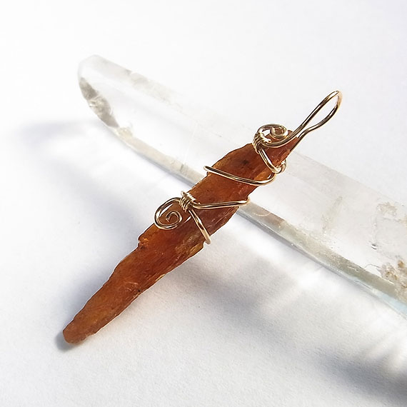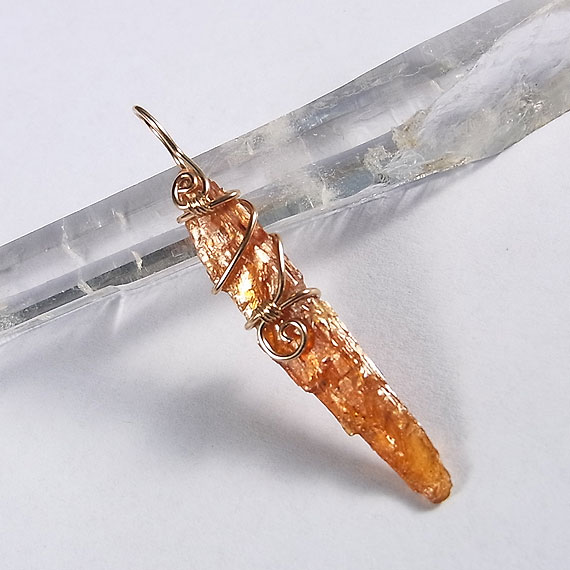 オレンジカイヤナイトの原石ペンダント k14GF タンザニアで産出するオレンジ色のカイヤナイト原石をk14GFワイヤーでペンダントに仕上げました。
