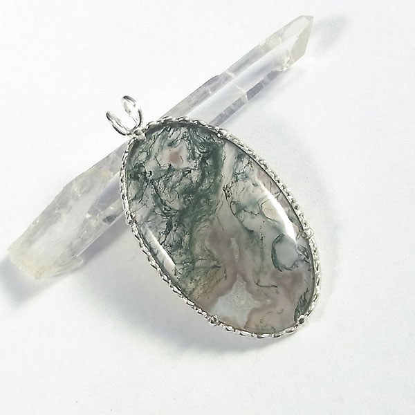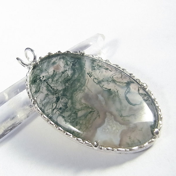 *モスアゲート* アゲートは微細なクォーツの結晶の集合体で、このような苔のように見える内包物を含んだものは