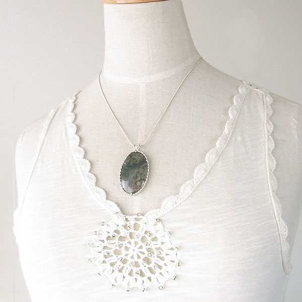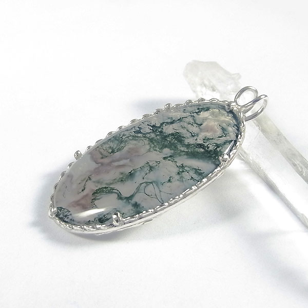 【使用石】 モスアゲート 42×26mm *チェーンは付属しません。 チェーンご希望のお方はオプションよりご注文ください。