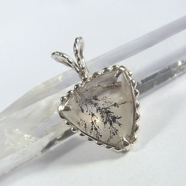 樹枝状の模様がバランスよく入ったデンドリッククォーツを粒飾りをあしらったシンプルなペンダントに仕上げました。