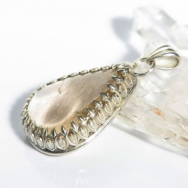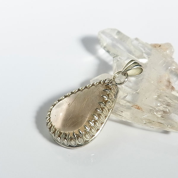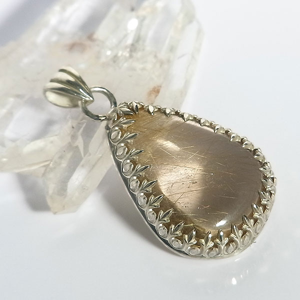 ルチルクォーツのレース枠ペンダント