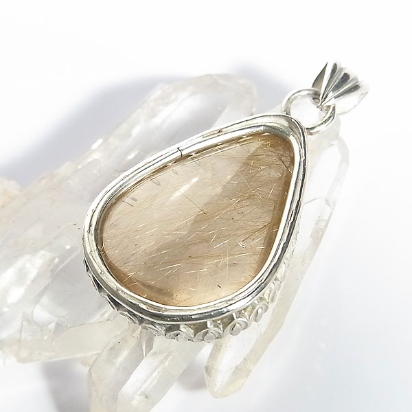 【使用石】 ルチルクォーツ 27 ×17mm 【使用金属】 SILVER 925 【サイズ】 縦の長さ34mm(バチカン含む) *チェーンは付属しません。 チェーンご希望のお方はオプションよりご注文ください。