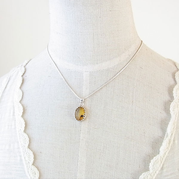 ブルーアンバーの飾り枠ペンダント(再販)