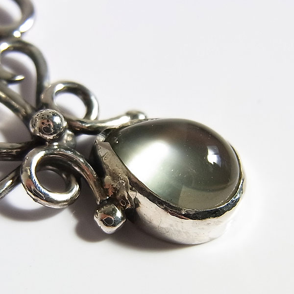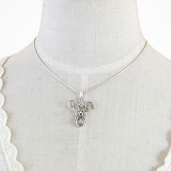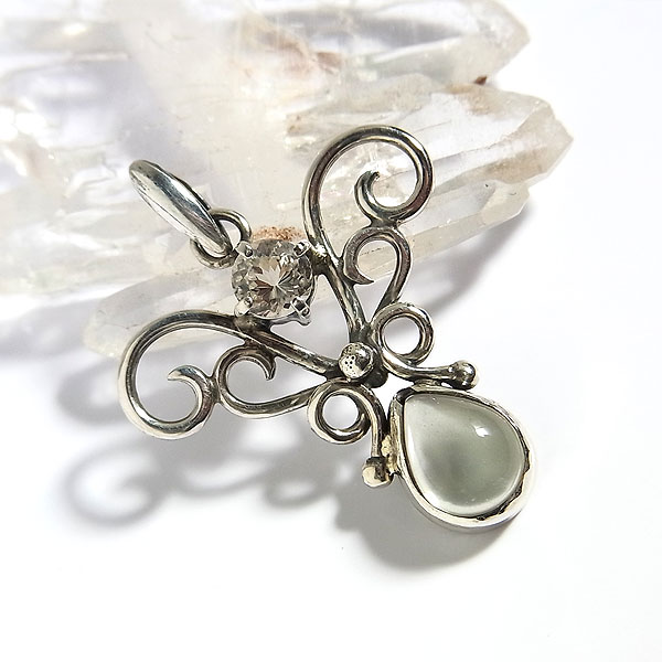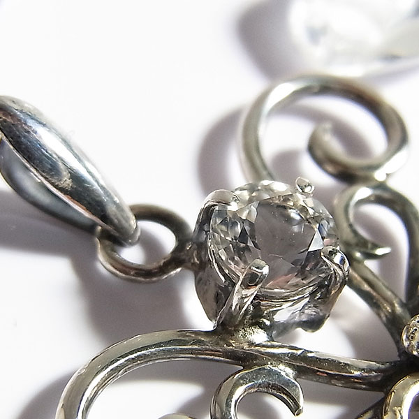 小粒ですが透明感のある美しいペタライトと、優しげな輝きを浮かべる パワー的なものは当方凡人なのでよく分からないのですが、とても清らかで美しい輝きの石なので 色合い的に落ち着いた印象なので、お洋服にも合わせやすいかと思います。