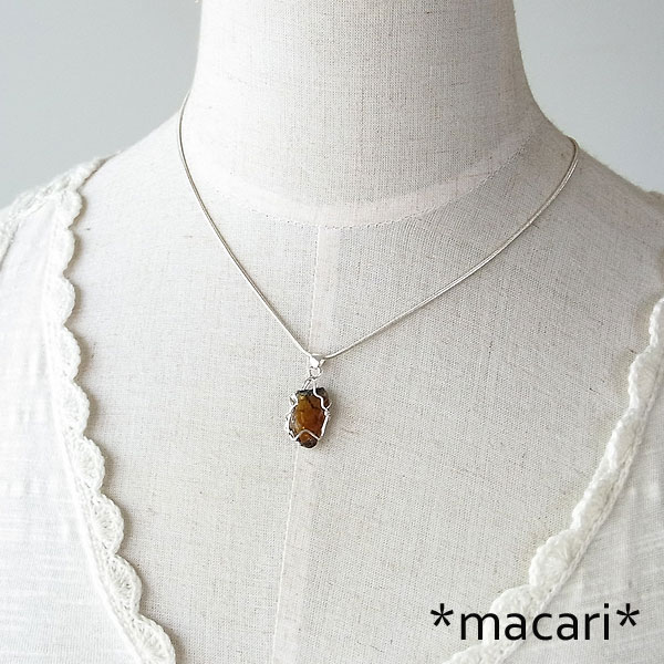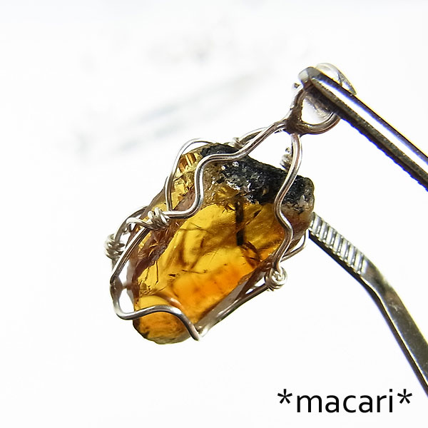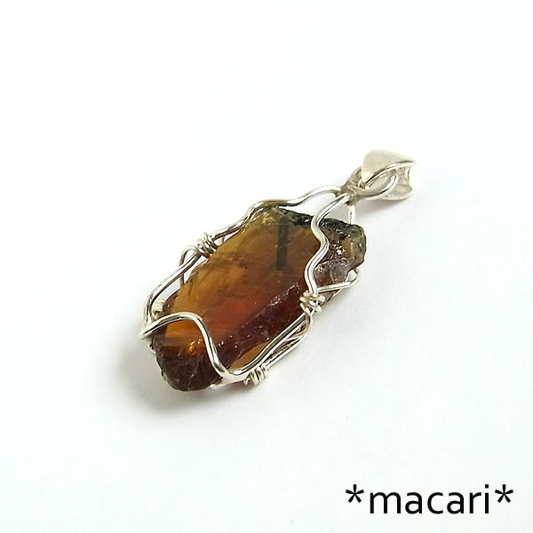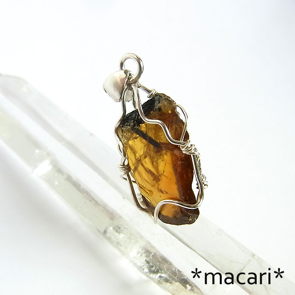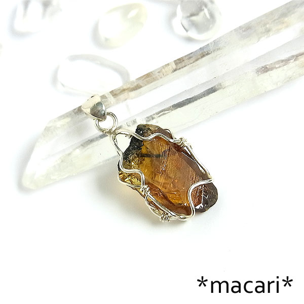 透明感のある落ち着いたブラウンカラーのスフェーンの結晶を銀線で閉じ込めた 特徴的な結晶の形がとても綺麗で、身に着けるよりお手元でじっと眺めて観察したくなるような 子供のころに理科の授業で鉱物標本を見た時のワクワク感を思い出される方もいらっしゃるかも。^^