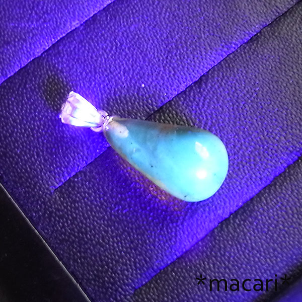 紫外線に当てると美しいブルーの蛍光を発することからブルーアンバーと呼ばれています。 こちらは少し蛍光が弱いタイプではありますが、ブラックライトを当てるとネオンブルーの美しい輝きが見られます。 |