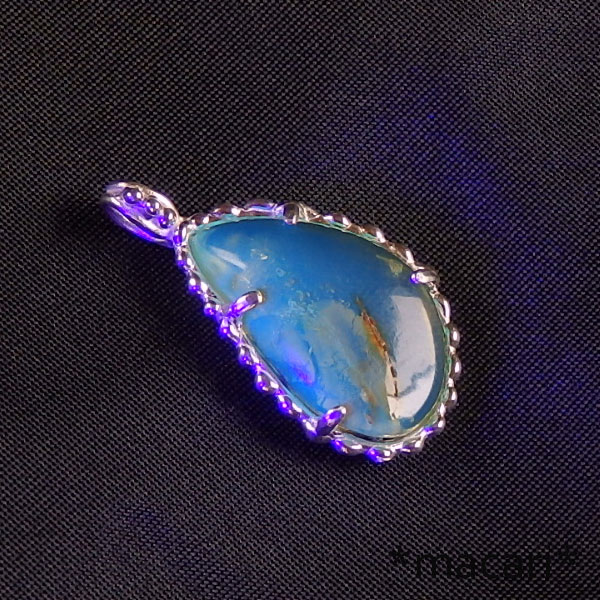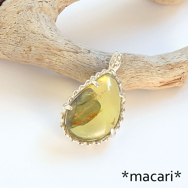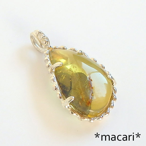 内包物は一見葉っぱの様にも見えたのですが、葉脈が見当たらないので違うもののようです。 こちらは強蛍光タイプではありませんが、ブラックライトなどに当てると ドミニカ共和国で産出する琥珀で紫外線に当たるとネオンブルーの鮮やかな蛍光を放ちます。 表面にインクルージョンに由来する溝などが見られますので、ご了承ください。 |
