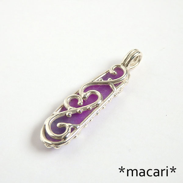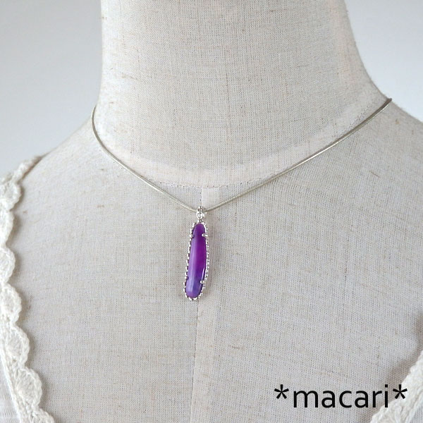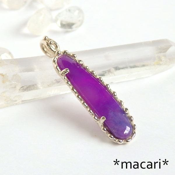 鮮やかな紫色が美しい上質なスギライトを粒飾りのペンダントに仕上げました。 こちらは白熱灯の下ですと鮮やかな赤紫にカラーチェンジして見えますよ。 かなりハッキリした色合いですが、あまり大きさはないのでお使いいただきやすいかと思います。^^