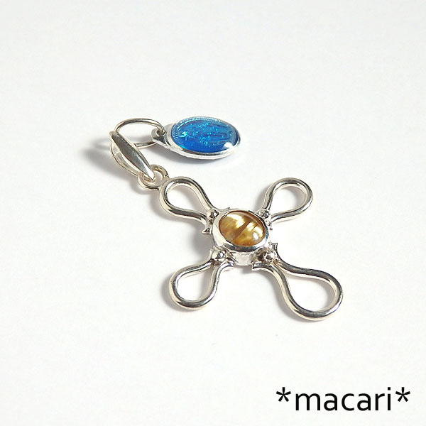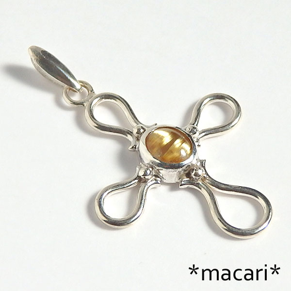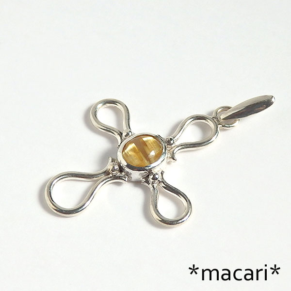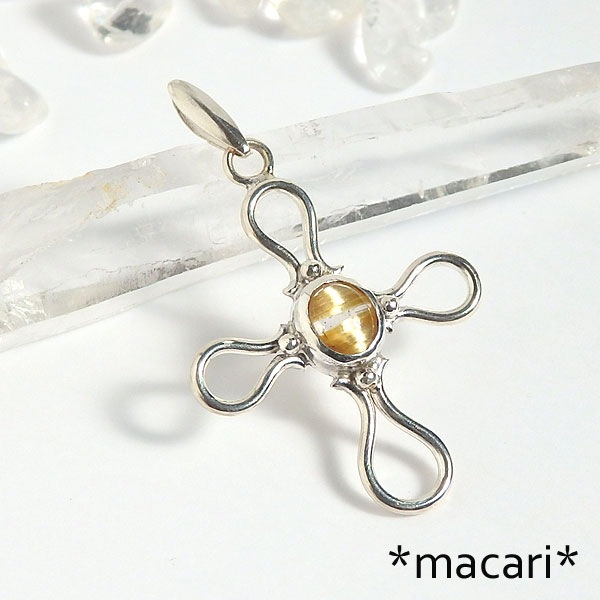 小粒ですが鮮やかな金色の輝きを放つ美しいルチルクォーツをクロスモチーフに飾り付けたペンダントです。 *ルチルクォーツ* 水晶に二酸化チタンの結晶を内包したもので、こちらの様なゴールドカラーの他にも 金色のものは金運を上げるとされていて、とても人気のある石です。 |