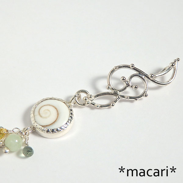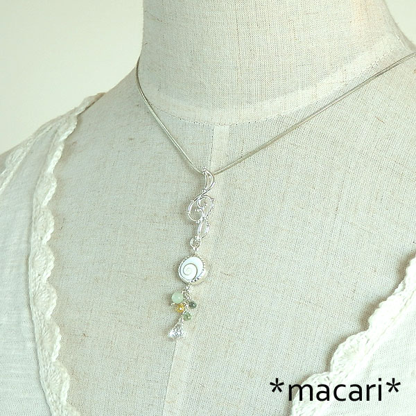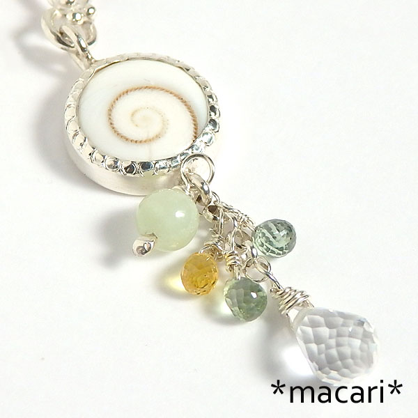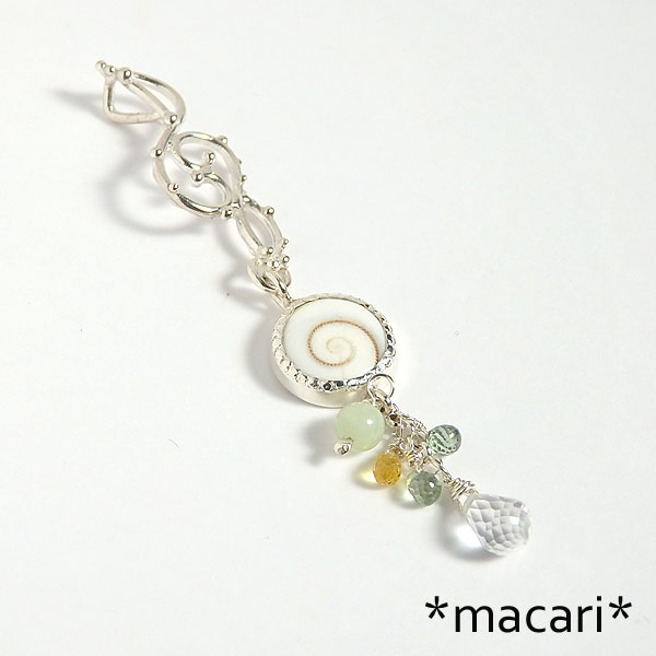 渦巻き模様がヒンドゥー教のシヴァ神の第3の眼に似ていることからシヴァアイと呼ばれる貝を インドではシヴァアイを健康と繁栄のお守りとして身に着けるそうです。 少し長さがあるデザインの為、チェーンに通してお使いいただくとY字ネックレスのように見えますよ。 |