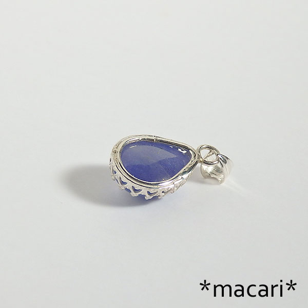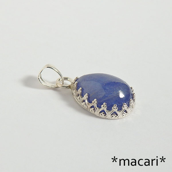 発色の美しい青紫のタンザナイトカボションを飾り枠で留めた 透明感はありませんがプックリした形がとっても可愛らしいですよ。^^ 小粒なので、お仕事中に着けていただいても邪魔になりにくいかと思います。