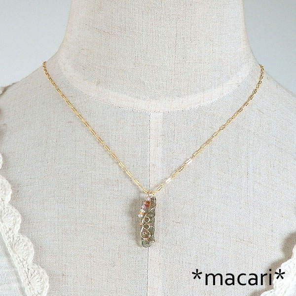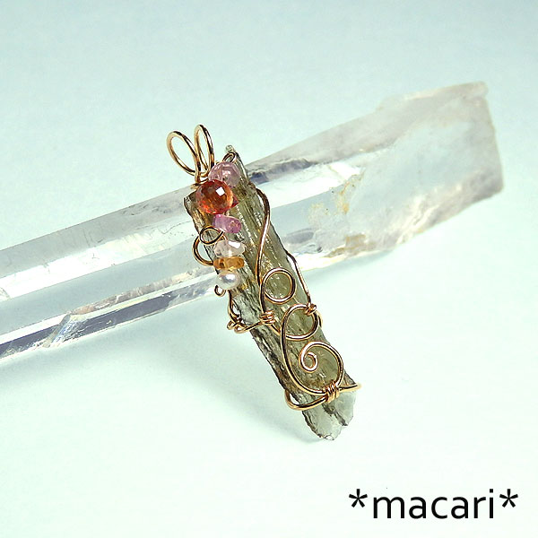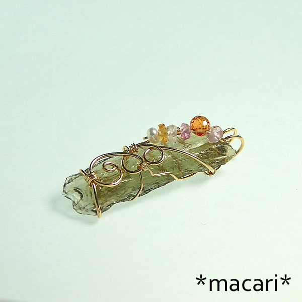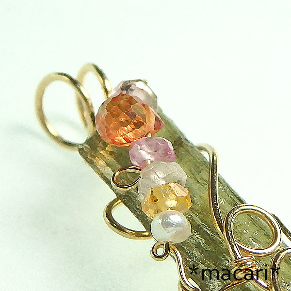 モルダバイト原石のワイヤーペンダント k14GF