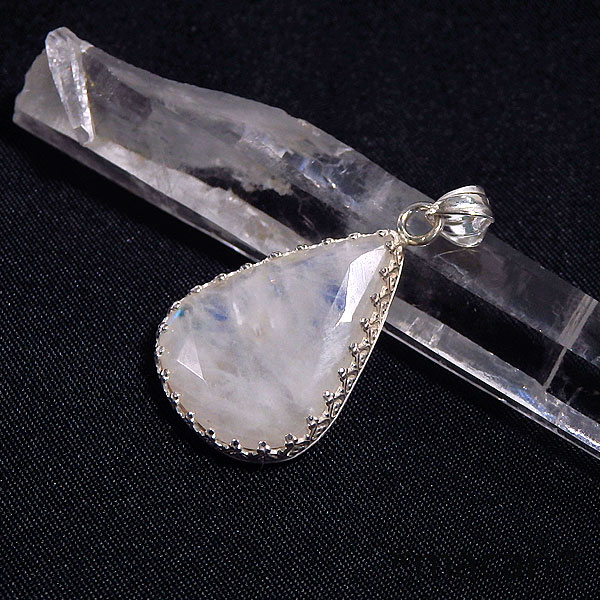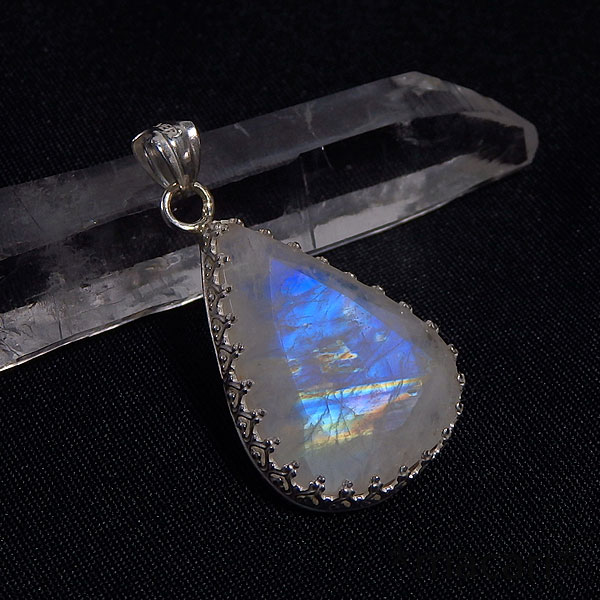 レインボームーンストーンの飾り枠ペンダント 1
