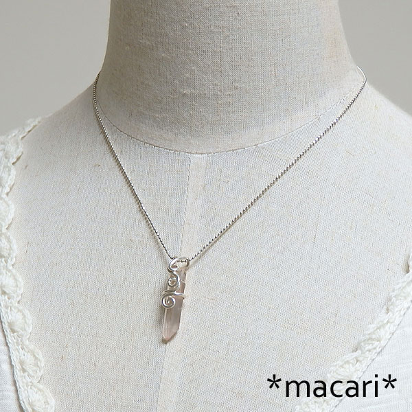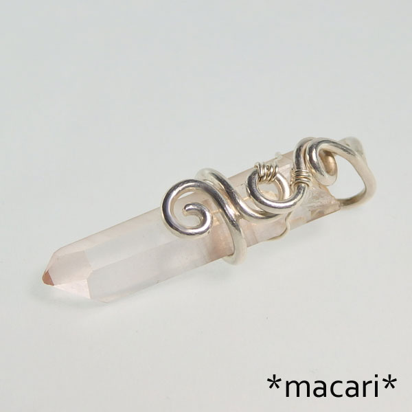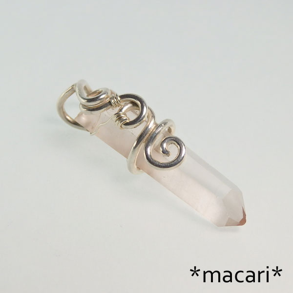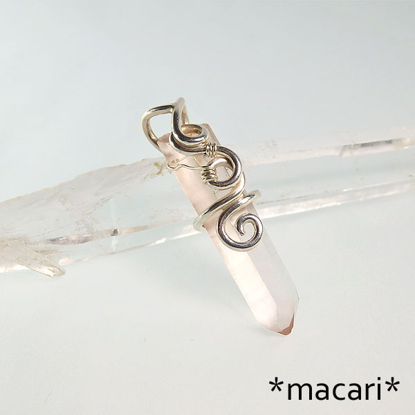 レムリアンシードクリスタルのペンダント ほんのりピンク色のレムリアンシードクリスタルを銀線でペンダントに仕上げました。 透明感のある硬質な雰囲気の水晶も綺麗ですが、こちらのようなマットな質感の水晶は