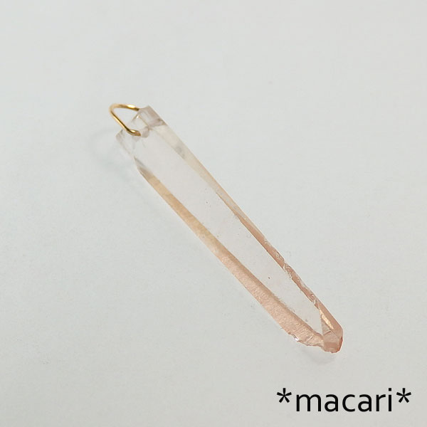 レムリアンシードクリスタルのペンダント k14GF ほんのりピンク色のレムリアンシードクリスタルに穴をあけk14GFの金具を取り付けた レムリアンにしては小ぶりなので、お使いいただきやすいかと思います。^^ 先端や側面エッジに小さな欠けが見られますので、ご了承ください。