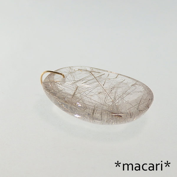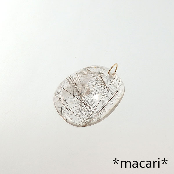 シルバールチルクォーツのペンダント k14GF 内包物がキラキラと輝くシルバールチルクォーツのルースに穴をあけ ルチル(金紅石)は二酸化チタンの結晶で、画像のような針状に水晶に入ったものは「針入り水晶」とも呼ばれます。 ゴールドカラーのものが人気がありますが、こちらの様なシルバーカラーも品があって素敵ですよ。^^ 少し白っぽい靄のようなインクルージョンがありますので、ご了承ください。