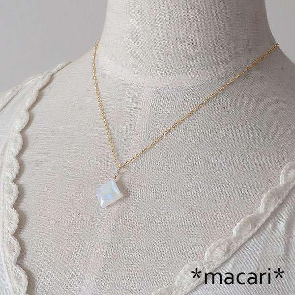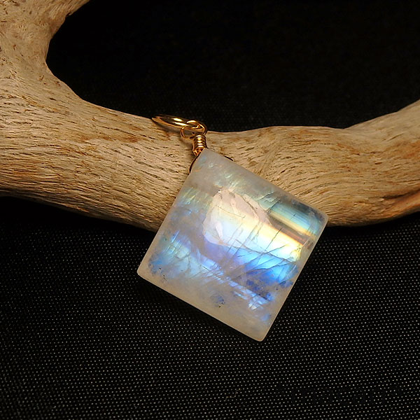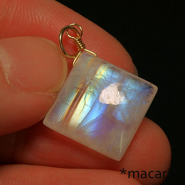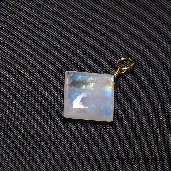 レインボームーンストーンのシンプルペンダント2 つるんとしたクッションカットのレインボームーンストーンをシンプルにk14GFでペンダントに仕上げました。 光の当たる角度によって、ブルーやイエロー、グリーンの色合いを見せる美しい石です。 名前にムーンストーンとつきますが、鉱物としてはラブラドライトに近いものになります。 |