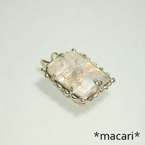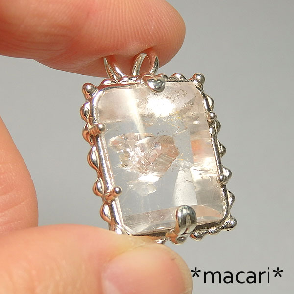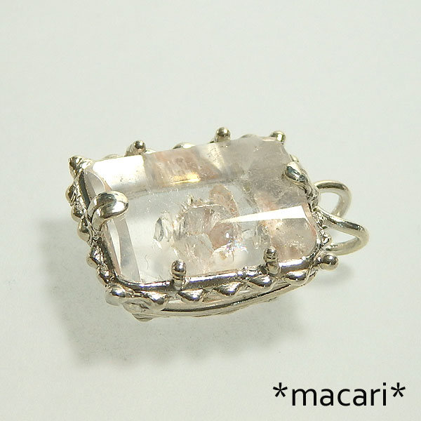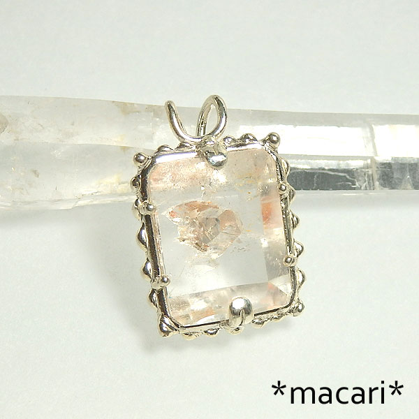 他の水晶の結晶を取り込んで成長した珍しい水晶のカットルースを シルバー製のペンダントに仕上げました。 画像では分かりにくいですが、中央に結晶の先端が見られます。