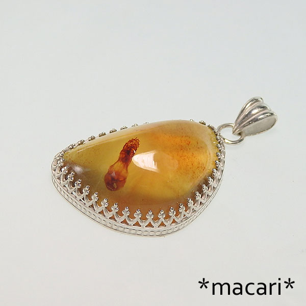 希少な琥珀ですが、今のところドミニカ産に比べると知名度が低いせいか、少し手ごろな価格になります。 インクルージョンが見られますが、なんか植物片っぽい・・・・雌しべのような形状ですが、正体は不明です。 |