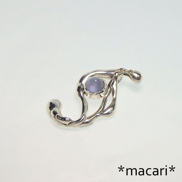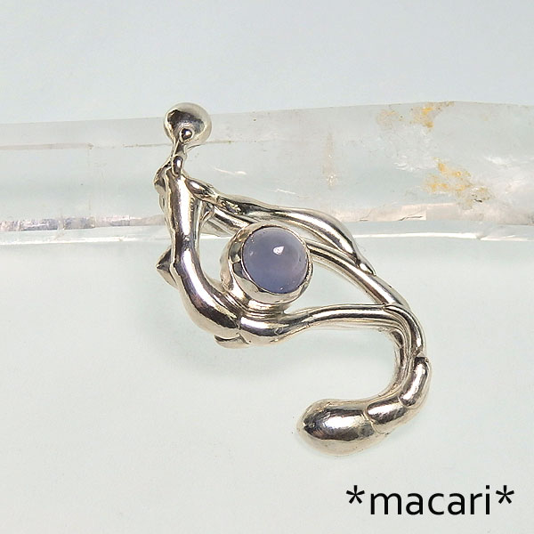 ナミビア産の美しいナチュラルカラーのカルセドニーを有機的なテクスチャのデザインペンダントに仕上げました。 小粒の石ですが山型の厚みのある形状なので、見る角度によって色の濃淡が変化したように見えます。 こちらはワックスを溶かして制作したデザインペンダントの為、全く同じ形状のものは作ることができません。