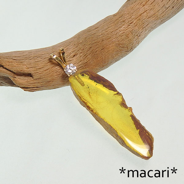 ドミニカ産 ブルーアンバー原石のスライスペンダント