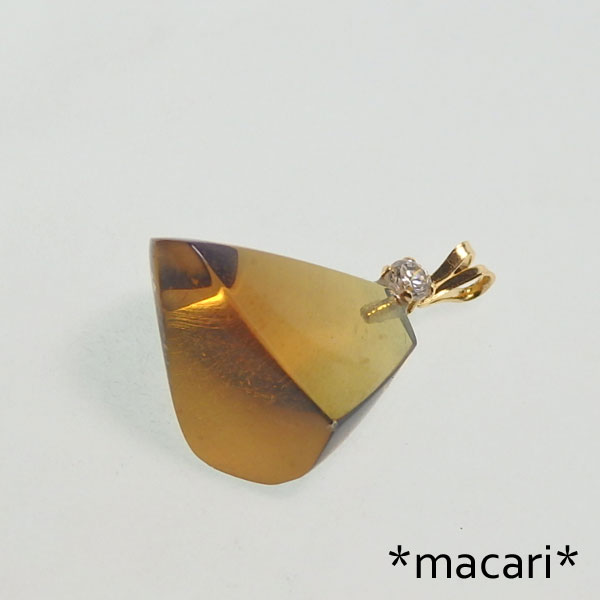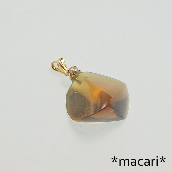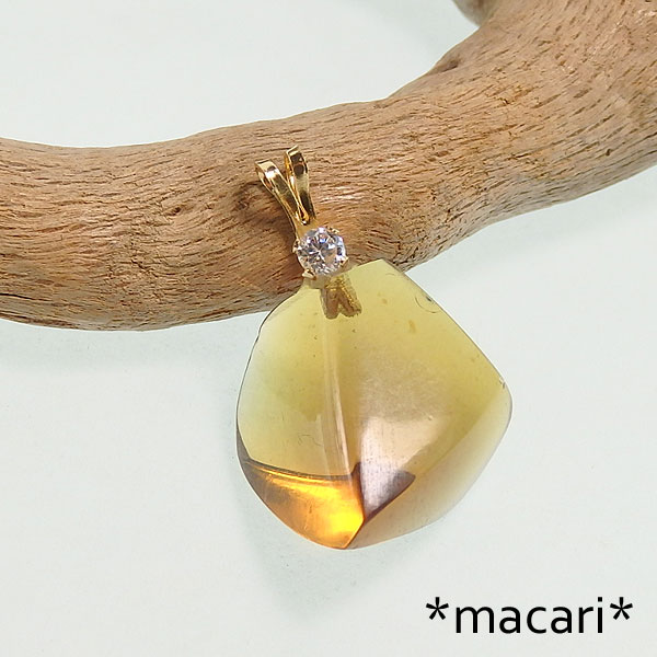 インドネシア スマトラ産で採れるブルーアンバーをk10のキュービックジルコニア金具で