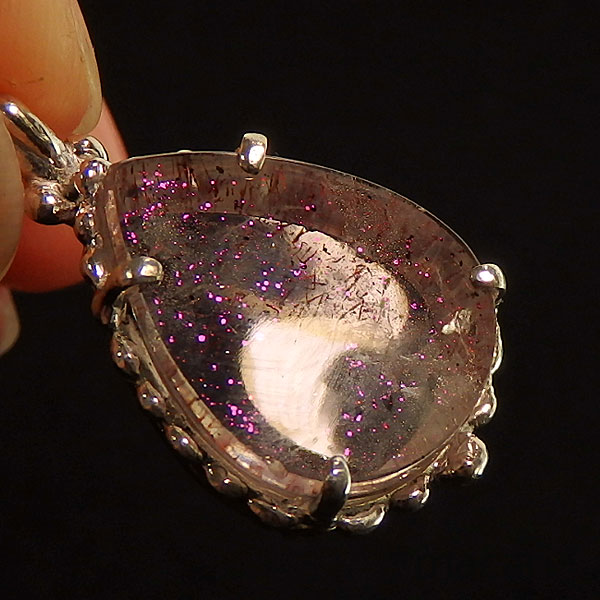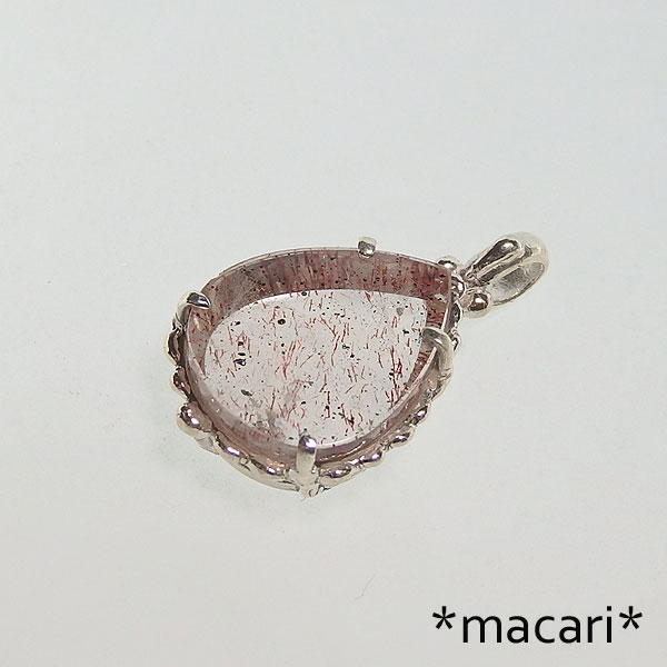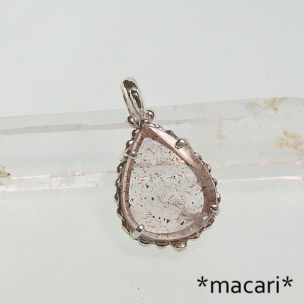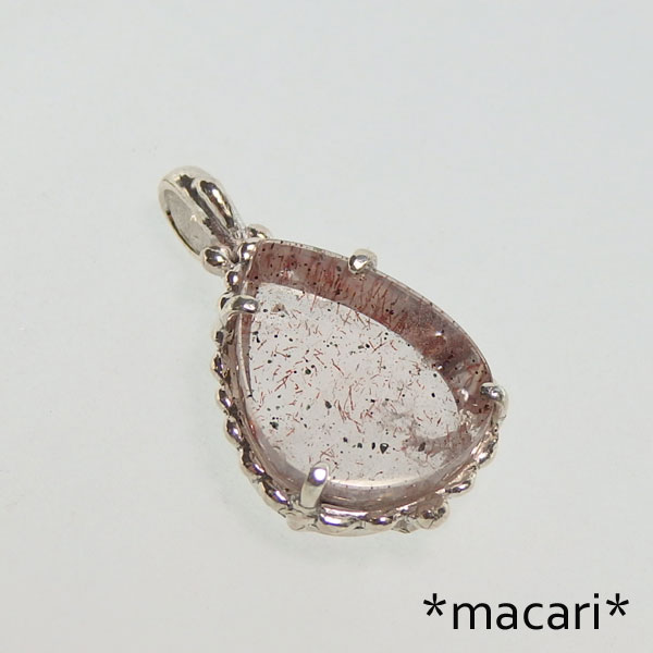 ピンクファイアークォーツのペンダント レアストーン!ピンクファイアークォーツを可愛らしいシルバーデザインのペンダントに仕上げました♪ 水晶の中にヘマタイトなどのインクルージョンが入っているもので角度によって こちらはピンクに輝く内包物以外にも赤みを帯びたゲーサイト(針鉄鉱)が全体的に内包されていますので 光が当たっていないと地味ではありますが、輝きを浮かべると |