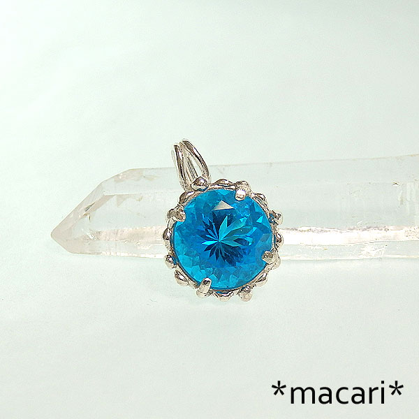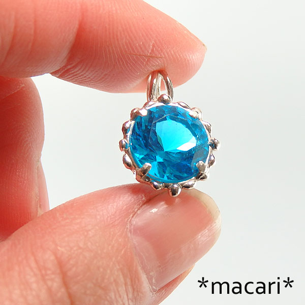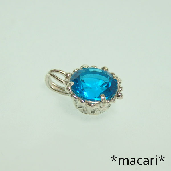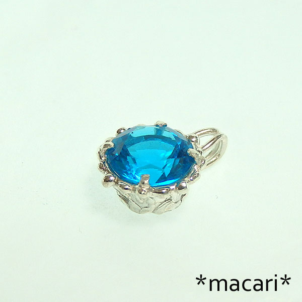 ブルーマンダリン(パライバガラス)のペンダント 鮮やかな蛍光ブルーが、ハッとするほど美しいブルーマンダリンと呼ばれる人造ガラスのルースを 高品質のパライバトルマリンにも似ていることからパライバガラスとも呼ばれます。 本物のパライバトルマリンで、こんな色合いだったらビックリする値段でしょうね〜。^^; とても細かなカットを施されていますので、煌めきが美しいですよ♪ この色合いを出すのは難しいそうで、 ガラスの割にはお高めです。 アメリカ製 |