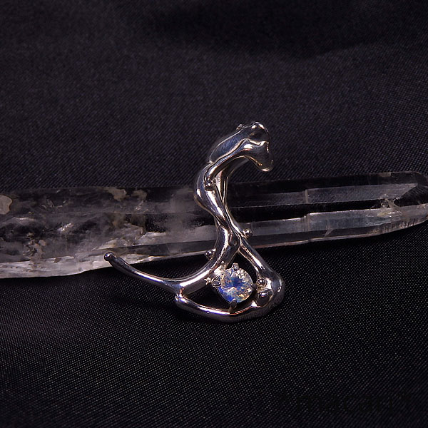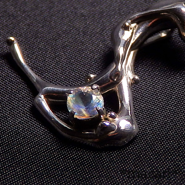 レインボーアンデシン・ラブラドライトのペンダント ワックスを溶かして成形した個性的なシルバーパーツに 目立つインクルージョンもなく、とても美しい石ですよ♪ アルファベットのモチーフとして作ったわけではないのですが、S字っぽくみえるかも? こちらのデザインは型取りしていませんので、同じものは制作できません。